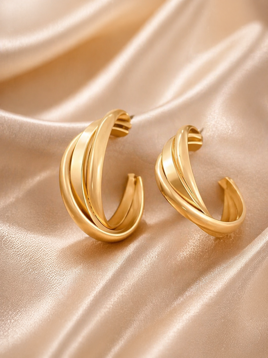Elevate your everyday style with the Golden Twist Luxe Hoops, crafted for modern elegance and versatility. Featuring a smooth, flowing twisted design in a rich gold-tone finish, these hoops offer a bold yet minimal statement. The sculpted curves reflect light beautifully, adding a soft glow to your look. Lightweight and comfortable, they are perfect for daily wear, office styling, or casual outings while still maintaining a premium feel. A timeless must-have piece for every jewelry collection.