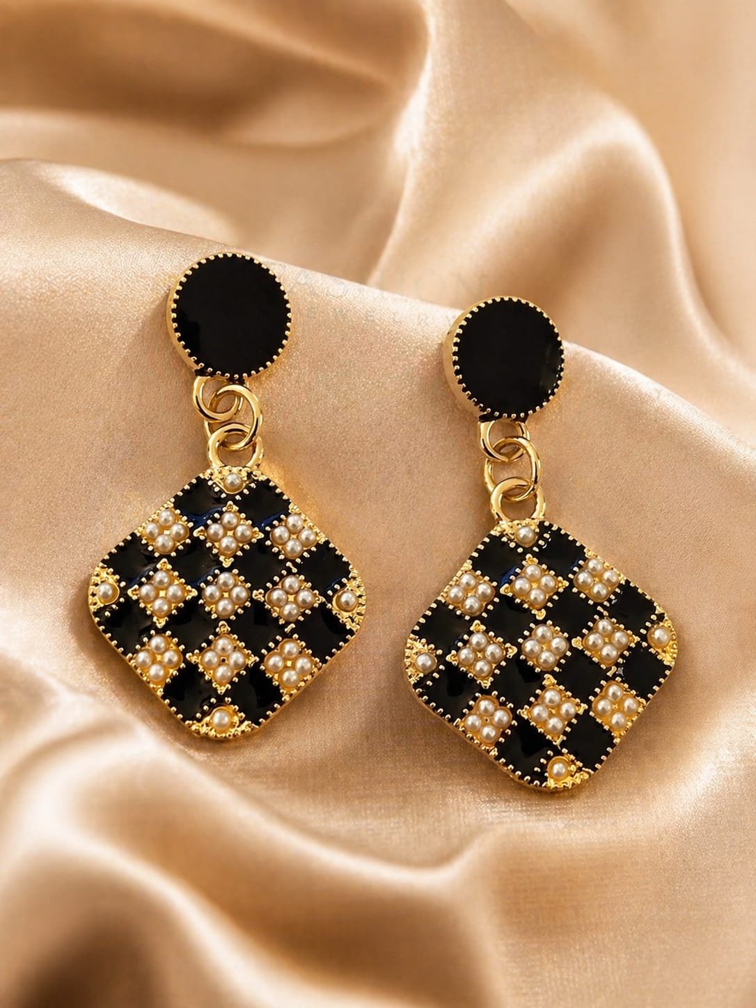 The elegant drop design with a textured black stud top enhances its premium appeal, while the gold-tone finish adds warmth and richness. Perfect for parties, festive occasions, or evening outings, these earrings are crafted to turn heads and elevate your style effortlessly.