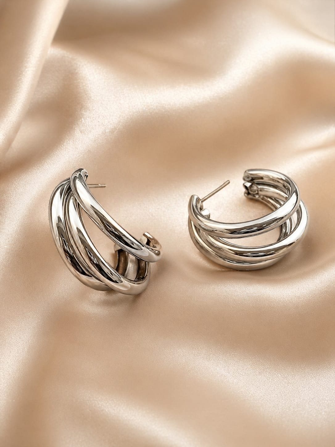 Modern silver hoops with a layered twist design — bold, sleek, and effortlessly stylish.
